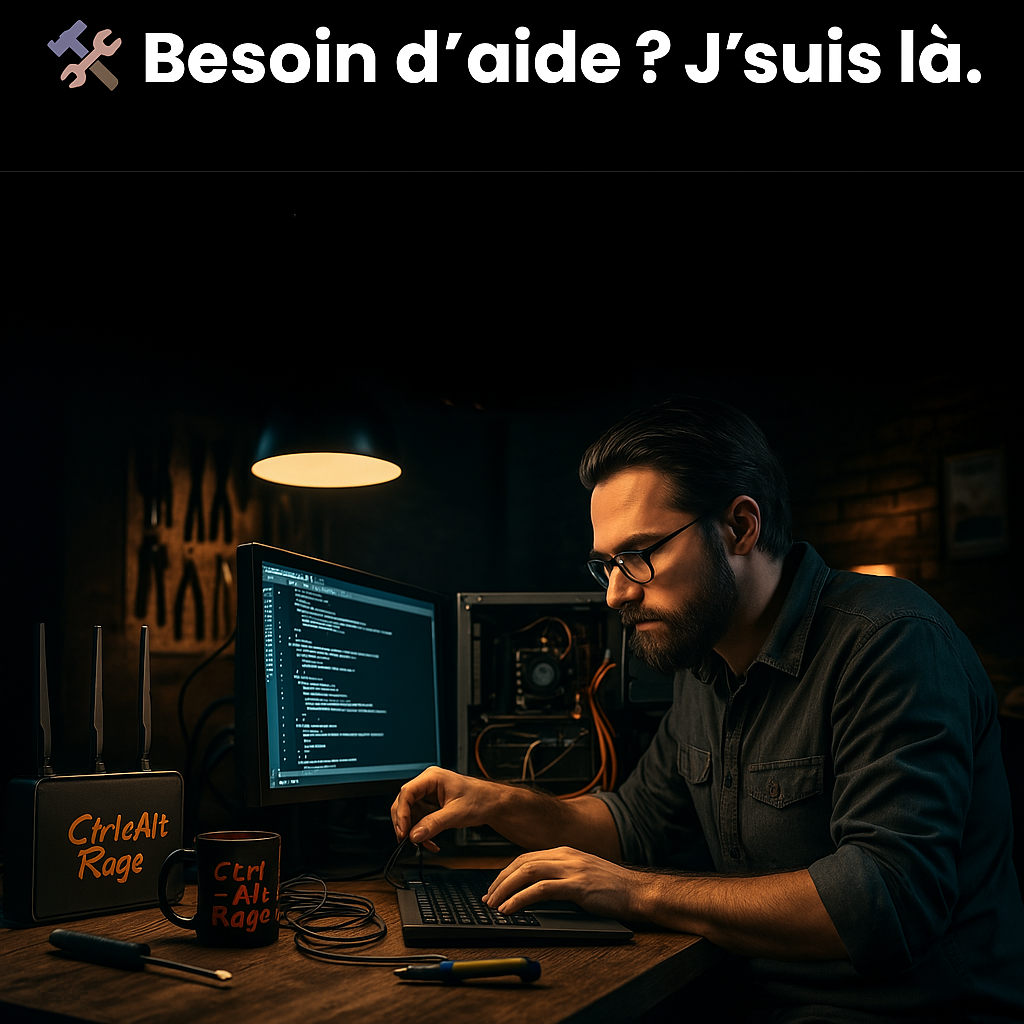 Je suis là. Services sur-mesure, maintenance, cloud, télétravail… avec quelqu’un qui te parle en français, pas en langue robotique de SSII.”